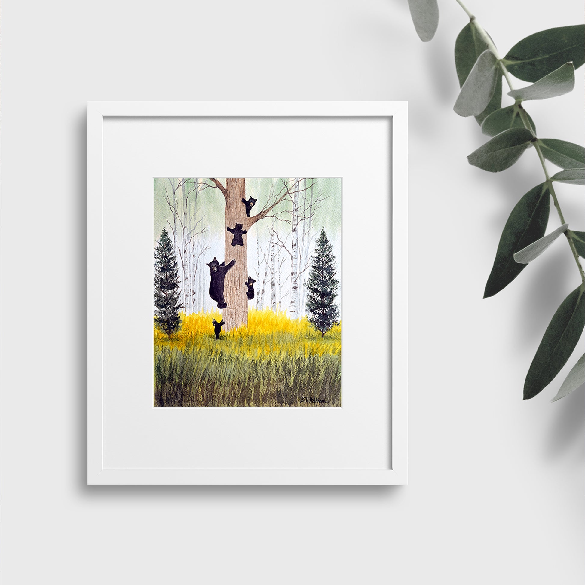 Bears Like Climbing Trees The Rockies Watercolor Art Print from the Original by Bill Holkham. All our prints are produced using Museum-Quality (200 gsm/80 lbs) Matt Paper. Prints are provided unframed.