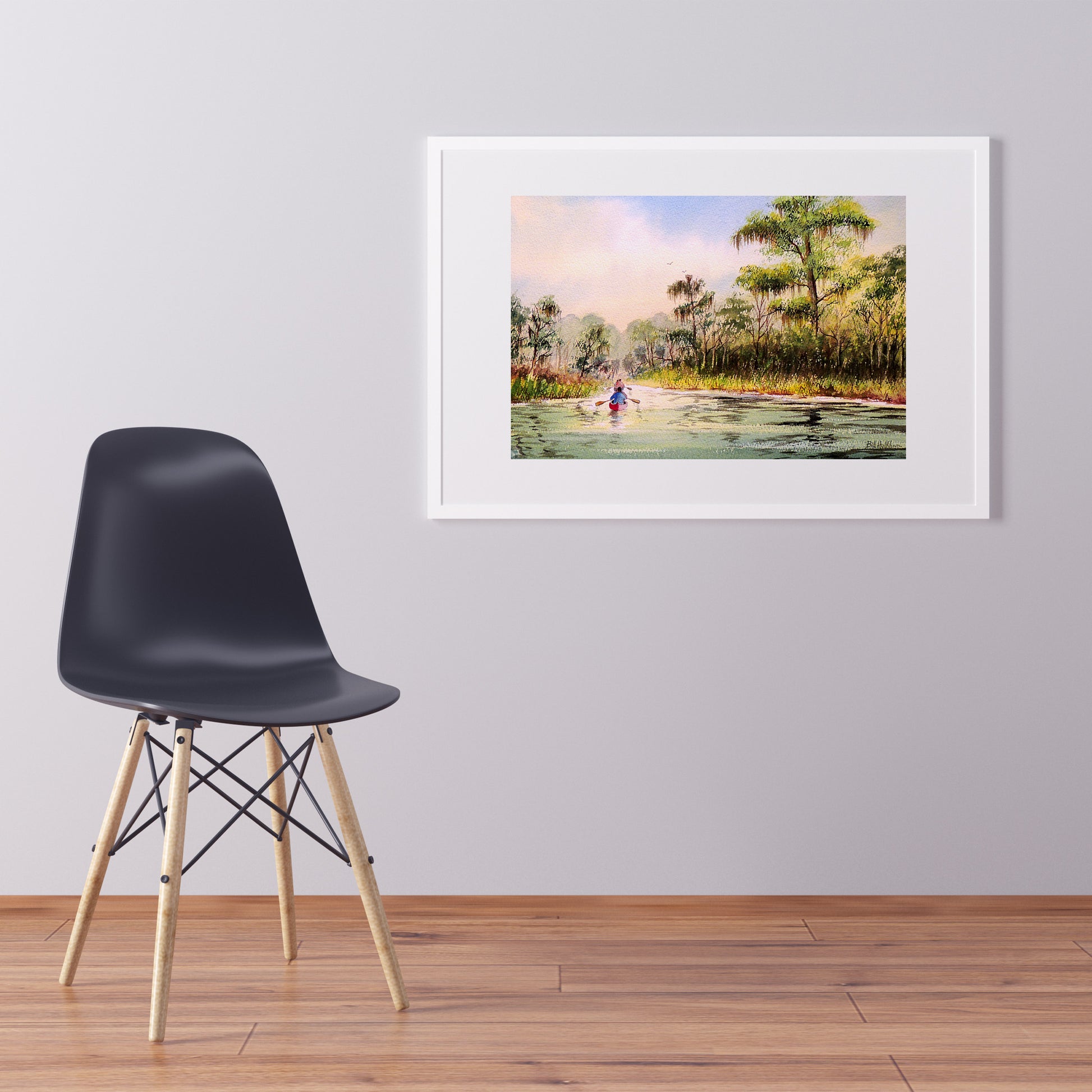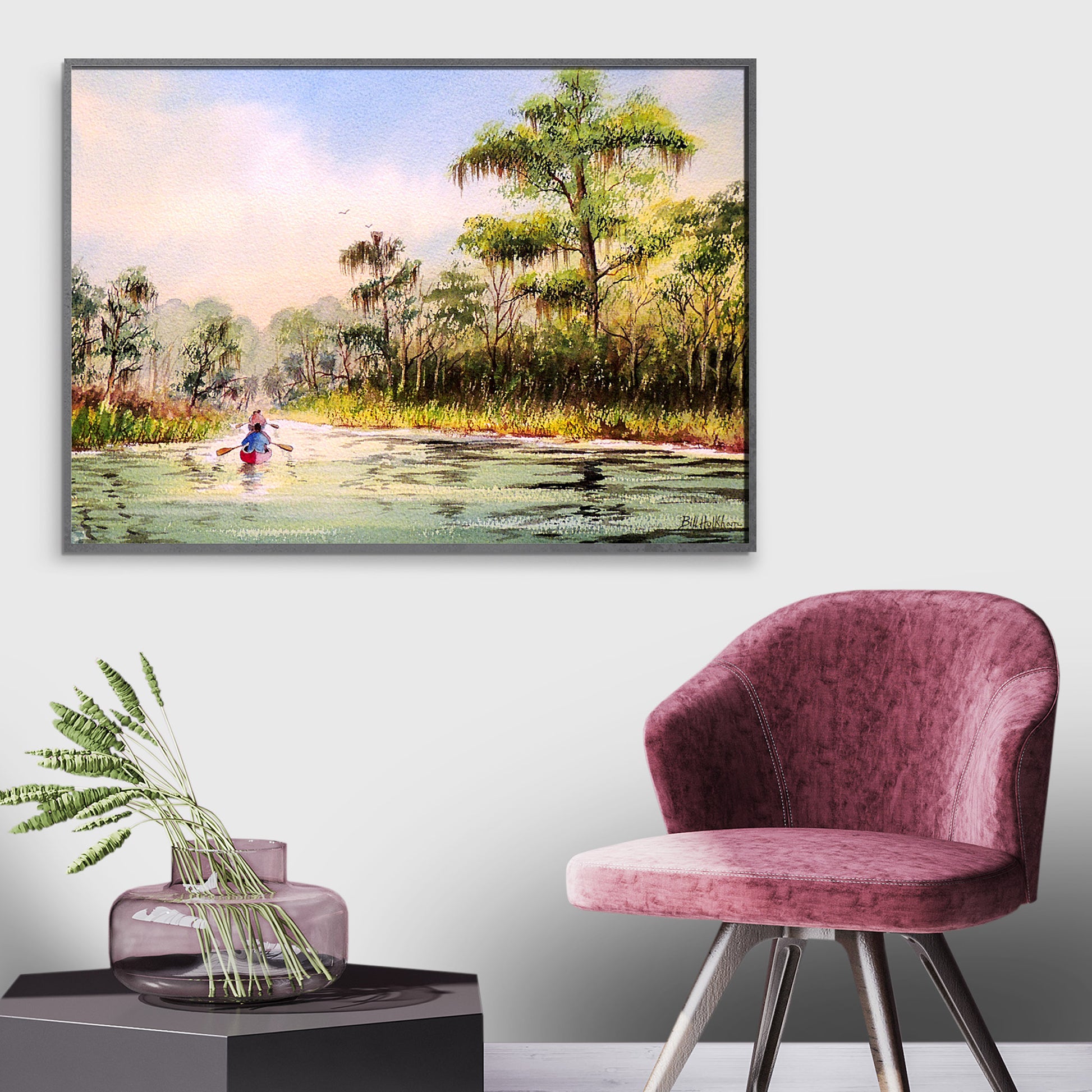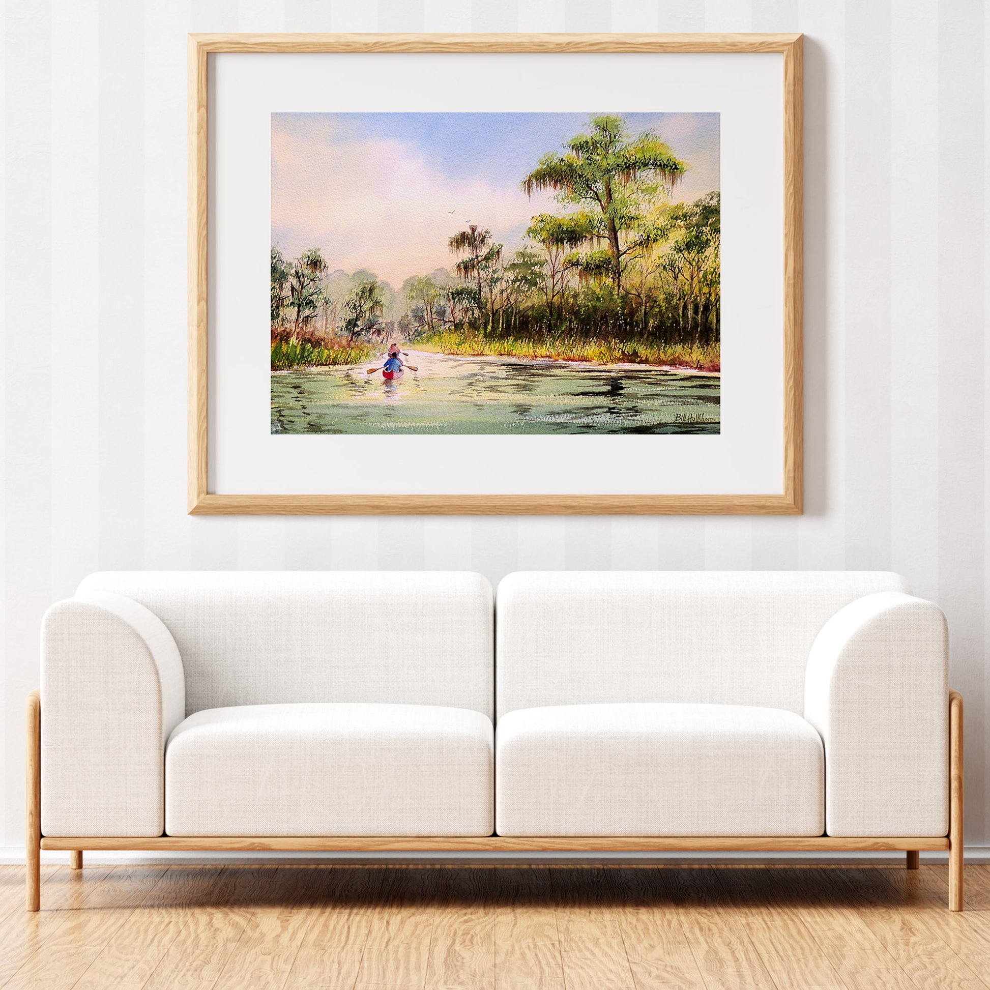 Canoeing The Wacissa River Florida Watercolor Art Print from the Original by Bill Holkham. All our prints are produced using Museum-Quality (200 gsm/80 lbs) Matt Paper. Prints are provided unframed.