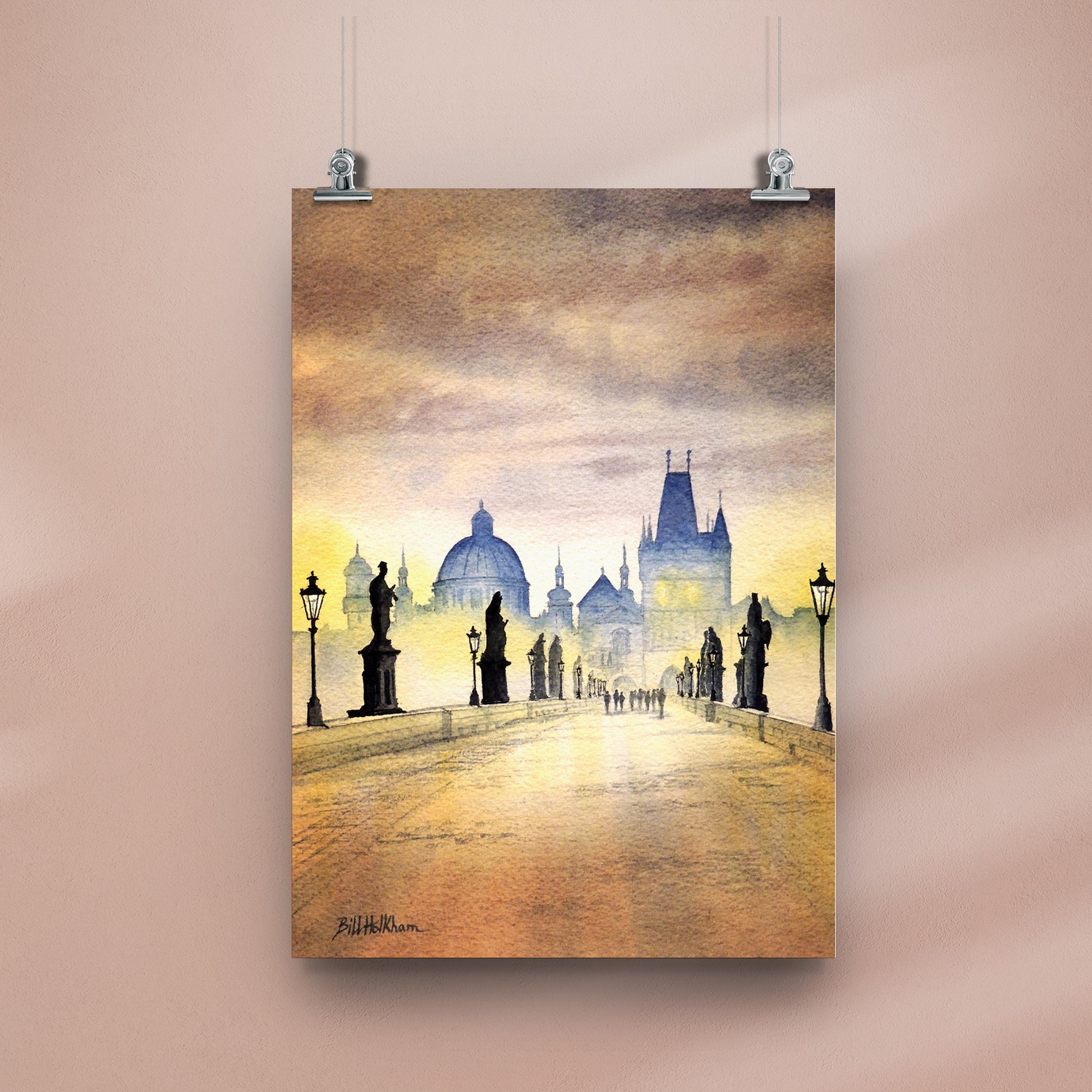 Charles Bridge Prague Watercolor Print from the Original by Bill Holkham. All our prints are produced using Museum-Quality (200 gsm/80 lbs) Matt Paper. Prints are provided unframed.