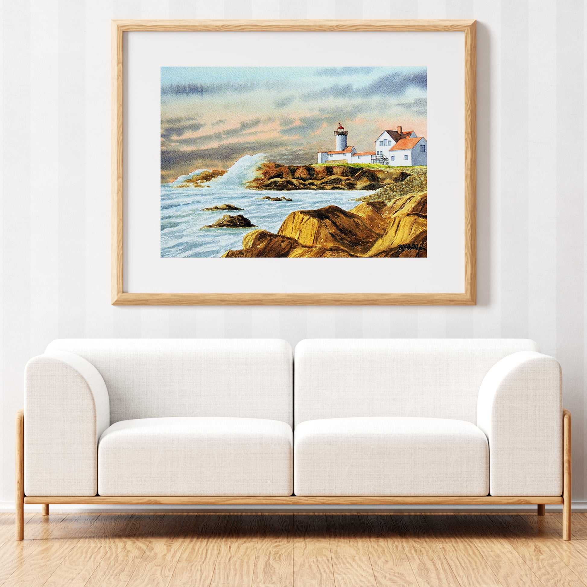 Eastern Point Lighthouse Watercolor Print from the Original by Bill Holkham. All our prints are produced using Museum-Quality (200 gsm/80 lbs) Matt Paper. Prints are provided unframed.