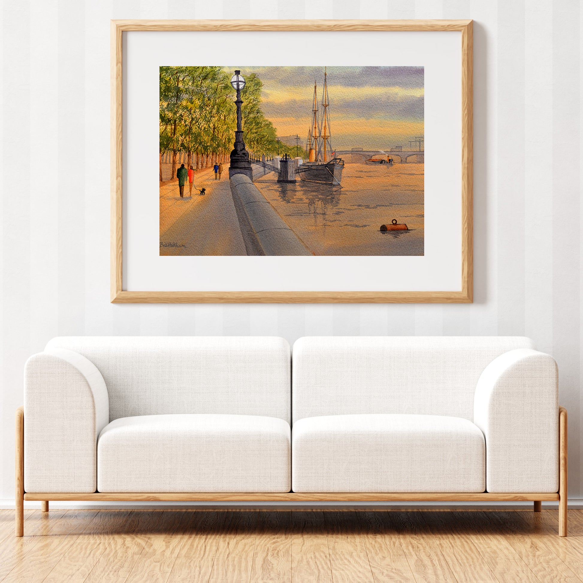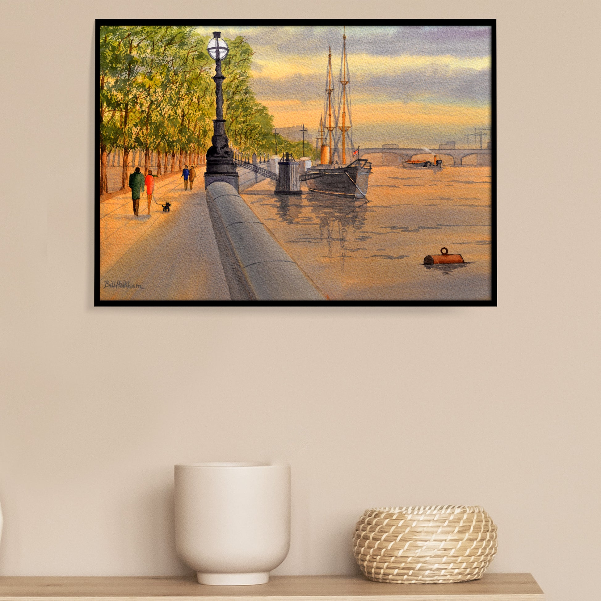 HMS Discovery At The Embankment is a Watercolor Art Print from the Original by Bill Holkham. All our prints are produced using Museum-Quality (200 gsm/80 lbs) Matt Paper. Prints are provided unframed.