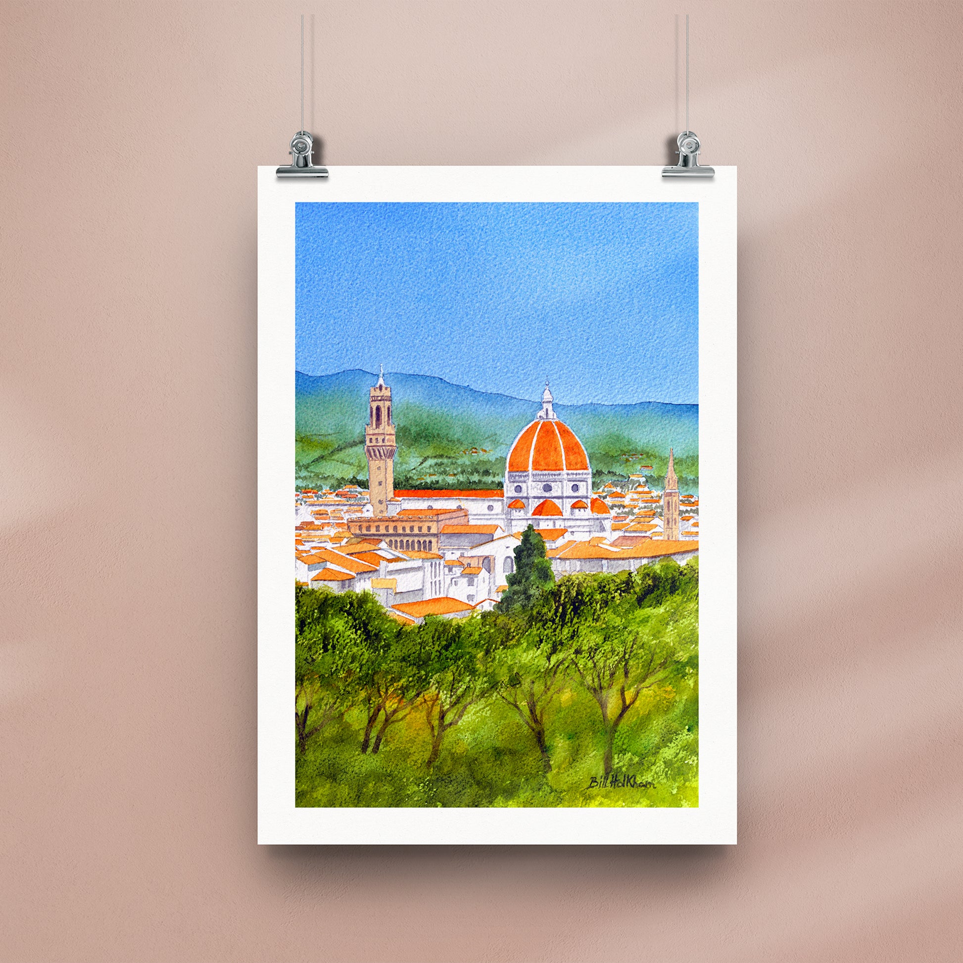 Impressions of Florence Watercolor Art Print From The Original By Bill Holkham. All our prints are produced using Museum-Quality (200 gsm/80 lbs) Matt Paper. Prints are provided unframed.