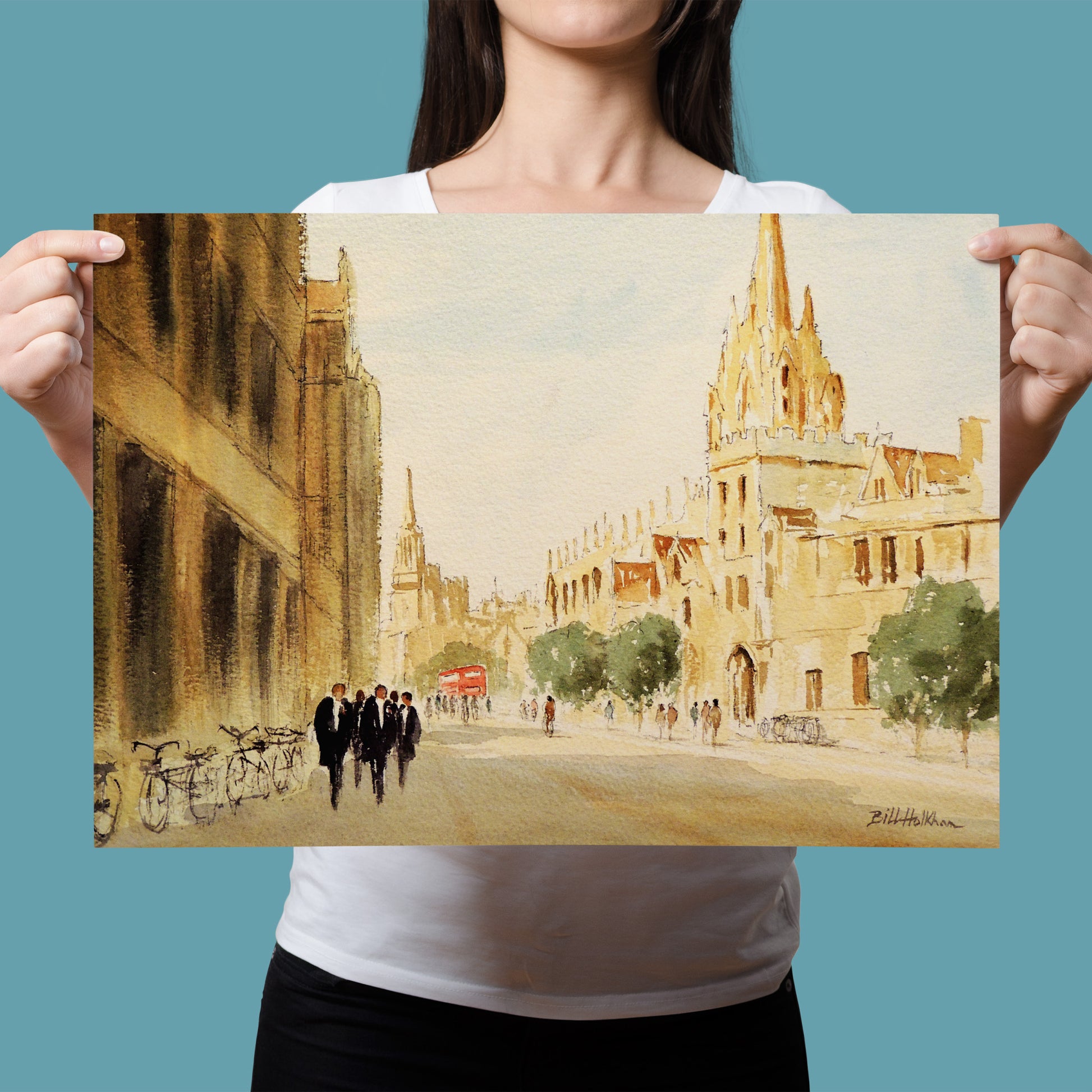 Oxford High Street is a Watercolor Art Print from the Original by Bill Holkham. All our prints are produced using Museum-Quality (200 gsm/80 lbs) Matt Paper. Prints are provided unframed.