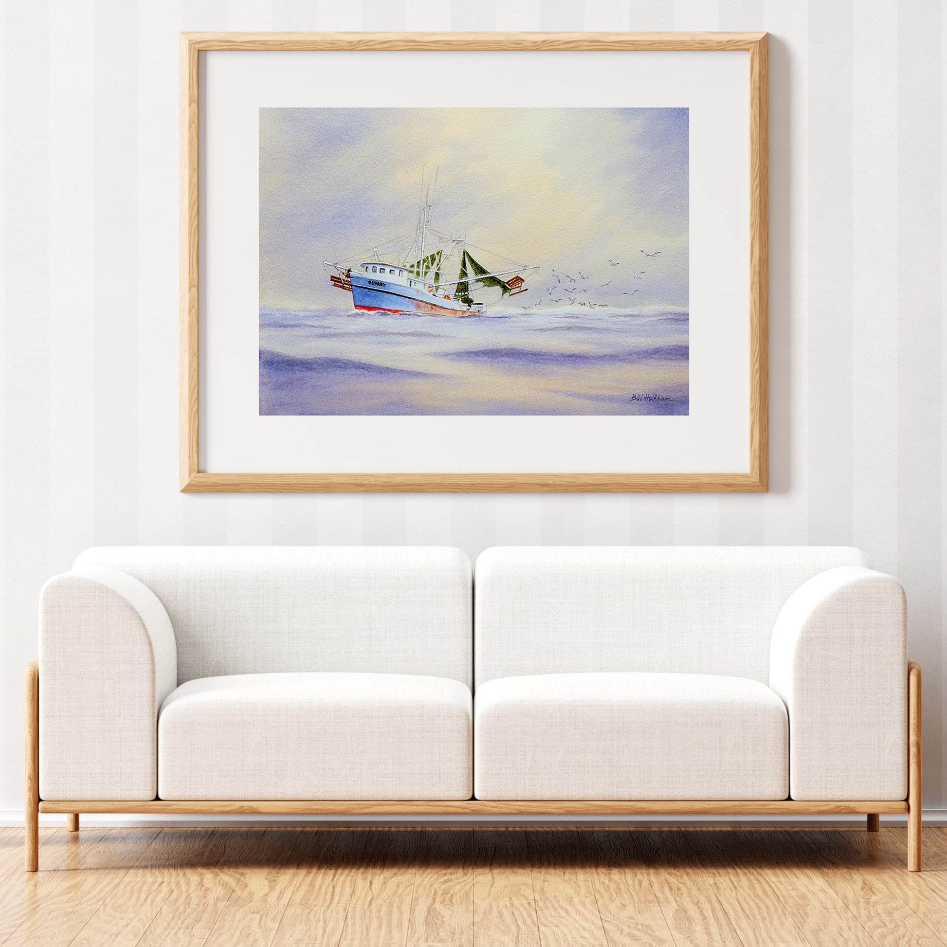 Shrimp Boat Gulf of Mexico Watercolor Art Print from the Original by Bill Holkham. All our prints are produced using Museum-Quality (200 gsm/80 lbs) Matt Paper. Prints are provided unframed.