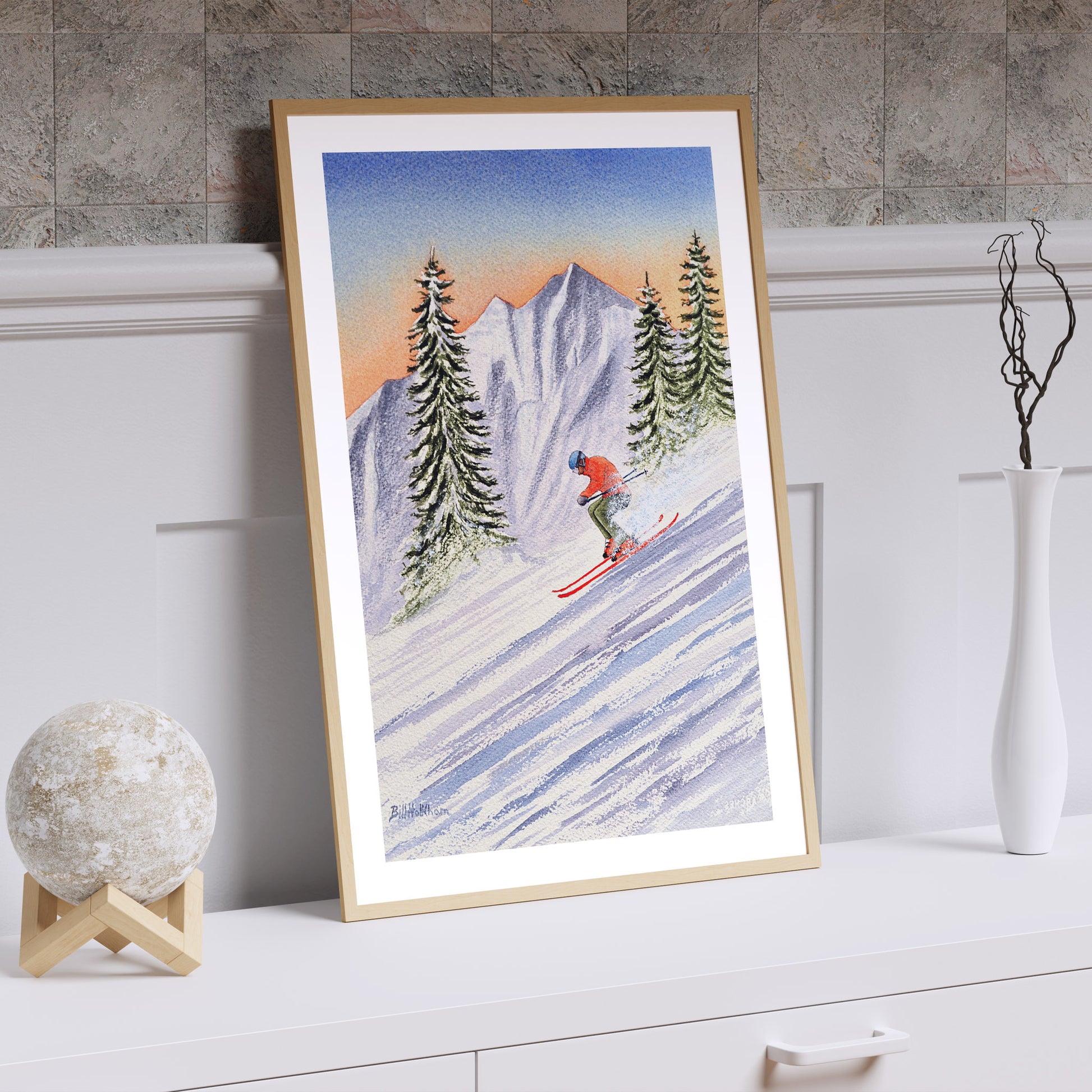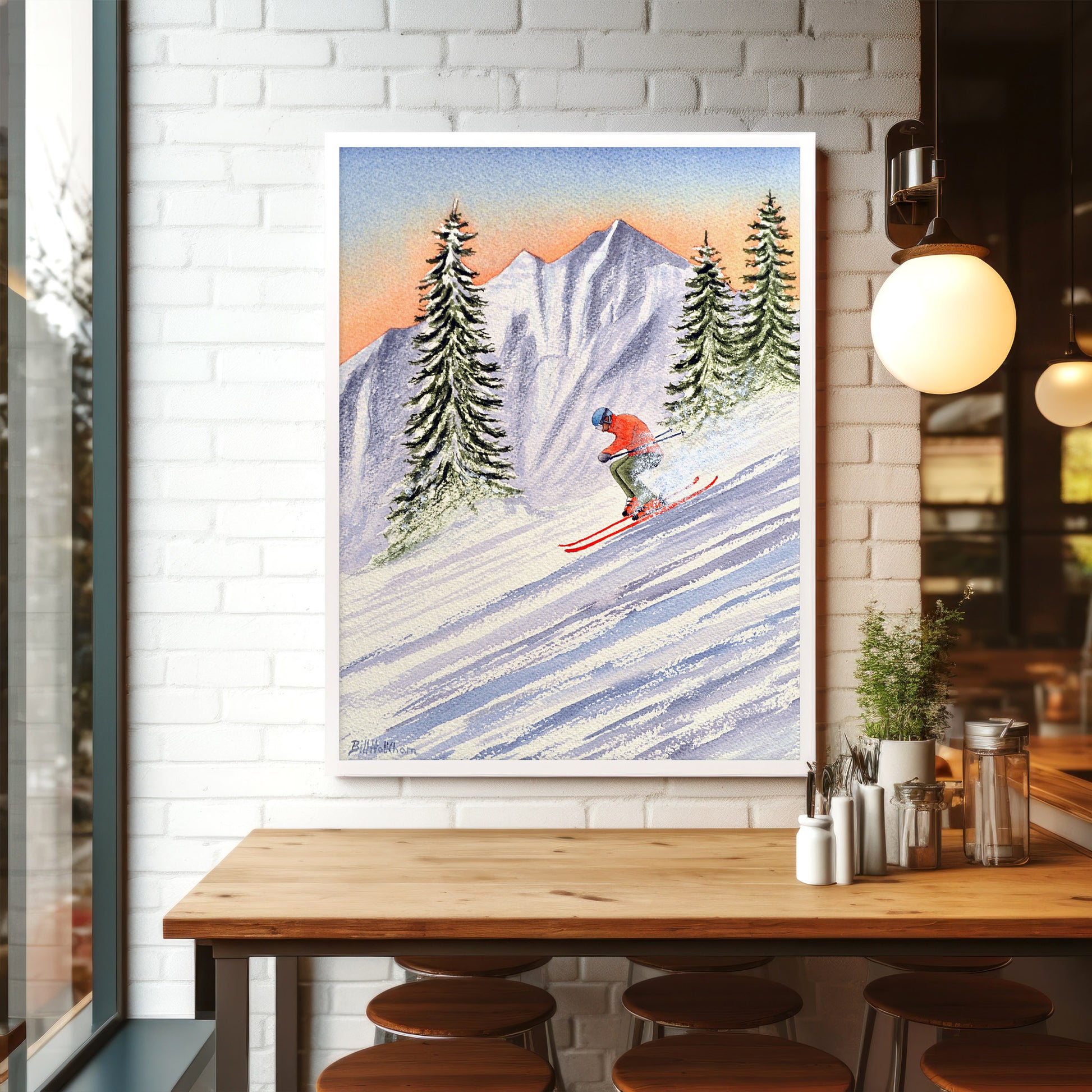 Skiing in Aspen Colorado Watercolor Art Print from the Original by Bill Holkham. All our prints are produced using Museum-Quality (200 gsm/80 lbs) Matt Paper. Prints are provided unframed.