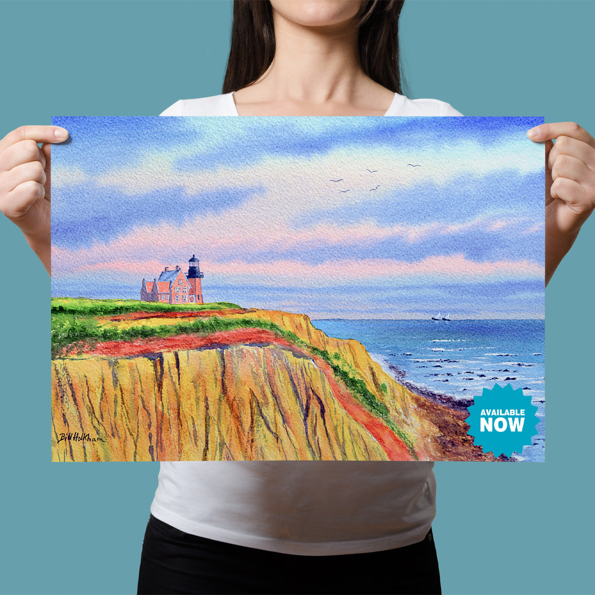 Southeast Lighthouse Block Island Watercolor Print from the Original by Bill Holkham. All our prints are produced using Museum-Quality (200 gsm/80 lbs) Matt Paper. Prints are provided unframed.