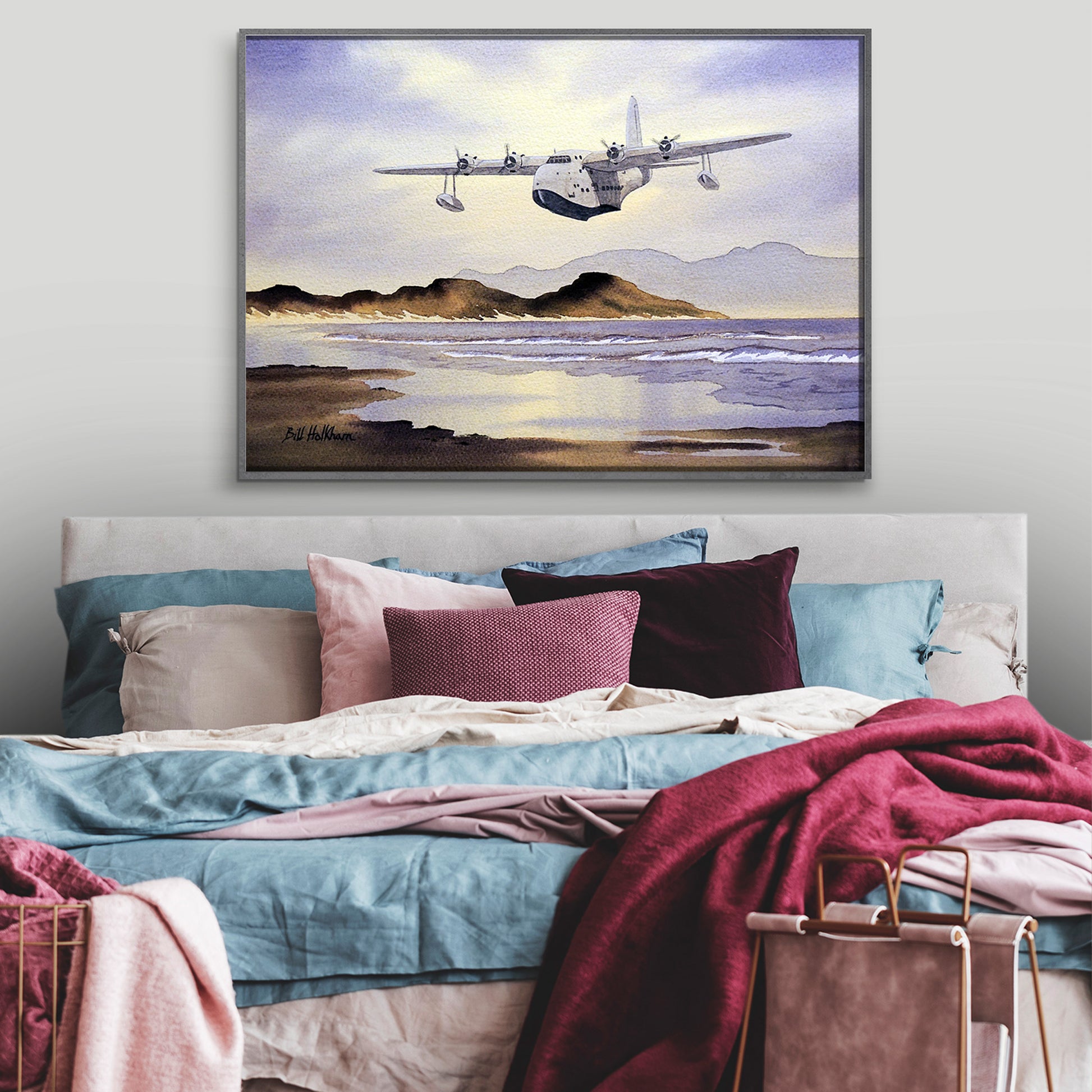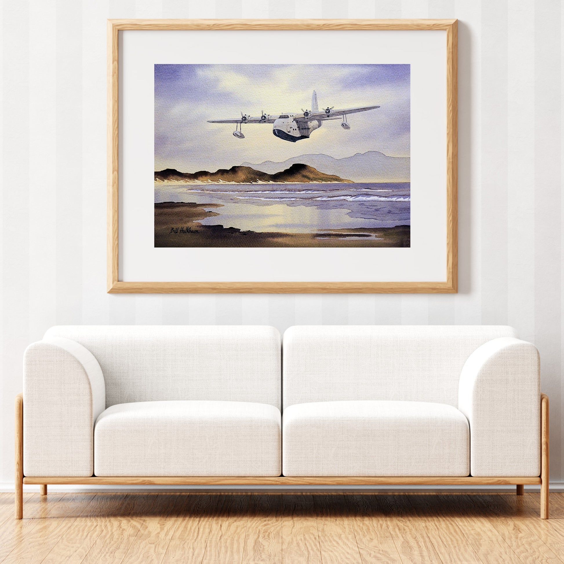 Sunderland Aircraft Over Scotland Watercolor Art Print from the Original by Bill Holkham. All our prints are produced using Museum-Quality (200 gsm/80 lbs) Matt Paper. Prints are provided unframed.