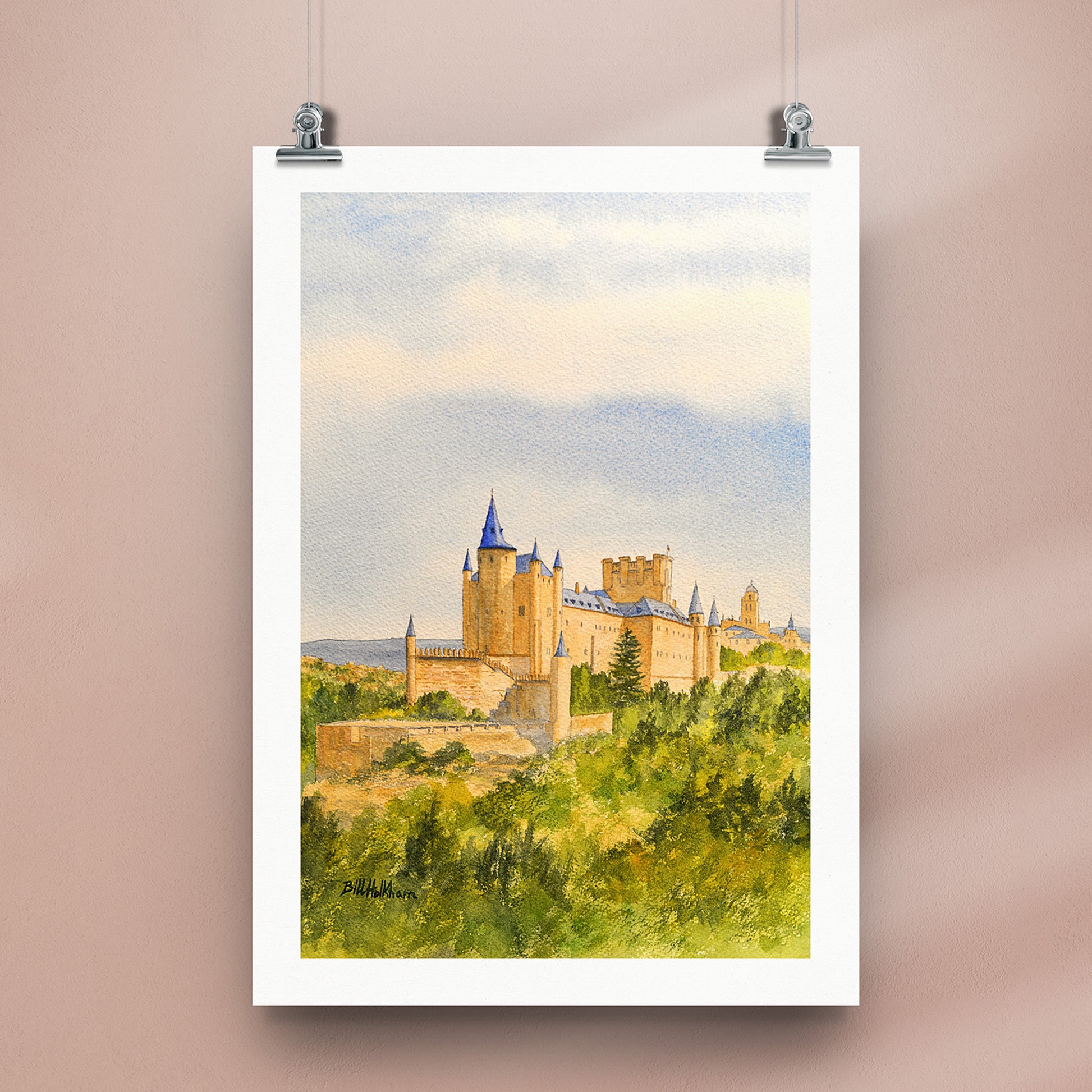 The Alcazar Segovia Spain Watercolor Print from the Original by Bill Holkham. All our prints are produced using Museum-Quality (200 gsm/80 lbs) Matt Paper. Prints are provided unframed.